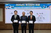인사이드피플 심정보 기자 | 영암군에 534억원 투자, 140명 고용 규모의 2개 수산식품 기업이 들어선다. 24일 전라남도청에서 전라남도와 영암군이, ㈜해진수산, ㈜해진식품과 투자협약을 체결하고 협력을 약속했다. 이날 협약에 따라 ㈜해진수산은 332억원을 투자해 영암군 삼호읍에 마른김 생산시설을 조성하고, 80여 명을 고용할 예정이다. ㈜해진식품도 같은 지역에 202억원을 투자해 조미김 생산시설을 구축하고 60여 명의 일자리를 창출할 계획이다. 영암군은 인·허가 신속 처리, 기반시설 확충 등 행정 지원으로 이번 협약을 뒷받침하고, 지역·기업 상생모델로 지역경제 활성화를 견인한다는 방침이다. 이날 투자협약에는 두 기업의 임한택 대표, 김영록 전라남도지사, 윤재광 영암군부군수 등이 함께 했다.