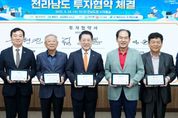 인사이드피플 심정보 기자 | 전라남도는 24일 도청 서재필실에서 ㈜성경식품, ㈜해진수산, ㈜해진식품 등 3개사와 투자금액 총 1천34억 원 규모의 투자협약을 했다고 밝혔다. 이번 투자로 302명의 신규 고용 창출도 기대된다. 이날 협약식에는 김영록 전남도지사를 비롯해 육현진 ㈜성경식품 대표, 김성윤 ㈜거해 대표, 임한택 ㈜해진수산·㈜해진식품 대표, 김희수 진도군수, 윤재광 영암부군수 등이 참석했다. ㈜성경식품은 자반김 전문업체 ㈜거해와 합작해 500억 원을 투자, 진도 군내농공단지에 생산시설을 구축한다. 최첨단 설비와 스마트 자동화 공정을 도입해 강화된 글로벌 위생 기준에 대응해 진도공장을 글로벌 수출 전진기지로 육성할 계획이다. 향후 조미김 등 완제품 가공 분야까지 투자 범위를 확대해 김 산업의 부가가치를 높여갈 예정이다. ㈜해진수산과 ㈜해진식품은 534억 원을 투입, 영암군에 마른김·조미김 생산라인을 구축한다. 해남에서 레미콘 기업을 운영해 온 임한택 대표의 식품산업 진출 사례로, 지역 내 식품 분야 투자 다각화를 촉진하는 모범 모델이 될 것으로 주목된다.