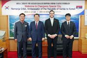 인사이드피플 심정보 기자 | 창원특례시는 27일 오전 시청 접견실에서 장금용 창원시장 권한대행이 네마냐 그르비치(Nemanja GRBIĆ) 주한 세르비아 대사를 접견하고, 양국 지방정부 간 교류·협력 방안을 논의했다고 밝혔다. 이번 접견은 창원시와 세르비아 간 상호 이해를 증진하고 향후 실질적인 교류 의제를 발굴하기 위해 주한 세르비아 대사관의 요청으로 마련된 첫 공식 만남이다. 이날 네마냐 그르비치 대사는 창원의 우수한 기술력과 산업 기반에 깊은 관심을 표명했다. 특히 '세르비아가 추진 중인 친환경 에너지 정책 속에서 창원의 기술은 매우 중요한 역할을 할 수 있을 것'이라며 적극적인 협력 의지를 전했다. 이에 장금용 창원특례시장 권한대행은 "창원은 기계, 방산, 원전 등 대한민국 제조업을 견인하는 핵심 산업도시로, 세르비아와의 협력 잠재력이 매우 크다"고 강조했다. 이어서 “이번 방문이 창원과 세르비아 간의 우호 관계를 공고히 하고 미래지향적 파트너십을 구축하는 계기가 되길 바란다"며, “앞으로도 지속적인 소통을 통해 다양한 분야에서 협력 성과가 도출될 수 있도록 노력하겠다”고 밝혔다. 또한 창원