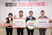 인사이드피플 심정보 기자 | 광양시는 6일 광양시청에서 광양 출신 향우 2명이 고향에 대한 애정과 응원의 마음을 전하는 ‘고향사랑기부금 전달식’을 개최했다고 밝혔다. 이날 전달식에는 미라클YT펌프 원영태 대표와 광양본가기정떡 박용무 대표가 참석해 각 100만 원씩 총 200만 원의 고향사랑기부금을 시에 전달했다. 이번 기부는 지방재정 확충과 지역경제 활성화를 목적으로 추진되고 있는 고향사랑기부제의 취지에 공감한 기부자들이 자발적으로 참여해 더욱 의미를 더했다. 특히 원영태 대표는 3년 연속으로 고향사랑기부제에 동참하며 꾸준한 기부 실천을 통해 지역 사랑과 나눔 문화 확산에 앞장서고 있다. 원영태 대표는 “고향 광양에 대한 마음을 담아 지역 발전에 조금이나마 보탬이 되고자 참여했다”며 “이번 기부가 고향사랑기부제의 취지를 널리 알리고, 더 많은 시민과 향우의 참여로 이어지는 계기가 되길 바란다”고 말했다. 박용무 대표는 “지역과 함께 성장해 온 만큼, 앞으로도 지역과 상생할 수 있는 다양한 방법을 지속적으로 고민하겠다”고 밝혔다. 광양시 관계자는 “광양 발전을 위해 늘 아낌없