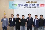 인사이드피플 조은설 기자 | 이범석 청주시장은 29일 임시청사 직지실에서 제106회 전국체육대회 출전을 앞두고 있는 직장운동경기부 선수단 감독들을 만나 격려했다. 오는 10월 17일부터 23일까지 부산광역시 아시아드주경기장을 포함한 82개 경기장에서 개최되는 전국체육대회에, 청주시 선수단은 총 328명이 27개 종목에 출전한다. 이 중 청주시청 직장운동경기부는 8개 부문*에 50명의 선수가 출전해 청주시의 위상을 드높일 예정이다. 감독들로부터 출전보고를 받은 이범석 시장은 “선수 여러분의 열정과 땀은 이미 청주시의 자랑”이라며 “이번 전국체전에서도 자신감을 갖고 그동안 갈고닦은 실력을 마음껏 펼쳐주시길 바란다. 청주시민들과 함께 여러분을 응원하겠다”고 따뜻한 격려와 응원의 메시지를 전했다.