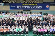 인사이드피플 조은설 기자 | 광주광역시체육회(회장 전갑수)가 26일 오후 2시 빛고을체육관에서 ‘제106회 전국체육대회 광주선수단 결단식’을 열어 대회 필승을 위한 각오를 다졌다고 밝혔다. 이날 행사에는 전갑수 체육회장, 김영문 광주시 문화경제부시장, 서용규 광주시의회 부의장, 이정선 광주시교육감을 비롯한 종목단체 회장, 임원, 육성학교장 등 관계자 400여 명이 참석해 광주시 대표선수단의 선전을 기원하며 격려했다. 행사는 사전공연, 전국체전 참가계획 보고, 대표선수 훈련영상 시청, 선수단기 수여, 선수대표 선서, 응원 메시지 및 격려금 전달 등의 순으로 진행됐다. 이날 선수 선서에는 육상 이재성(광주시청)과 양궁 오예진(광주여대 4년)이 함께 나서 선수단을 대표해 필승 결의를 다졌다. 광주선수단은 이번 부산 전국체전에서 육상 남자 400m 계주(광주시청) 5연패에 도전한다. 또 지난해 제105회 체전에서 대회 4관왕에 오른 육상 고승환과 한국 근대5종 간판 전웅태(이상 광주시청)가 국가대표로서의 기량을 선보인다. 역도 국가대표 손현호(광주시청)와 여고부 농구 강호 수피아여고 등도 출전해 시‧도 종합득점 30,