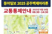 인사이드피플 조은설 기자 | 공주시는 전국 마라톤 동호인들의 중부권 최대 축제인 ‘2025 공주백제마라톤대회’를 오는 9월 28일 오전 9시 공주시민운동장에서 개최한다고 밝혔다. 올해로 23회를 맞은 공주백제마라톤대회는 공주시와 동아일보가 공동으로 주최하며, 지난 6월 접수 당시 불과 14시간 만에 신청이 마감될 정도로 큰 인기를 얻어 전국적인 대회로 확고히 자리매김했음을 보여주었다. 이번 대회에는 전국 각지에서 모인 마라톤 동호인과 시민 등 역대 최대 규모인 1만 2,100여 명이 참가할 예정이다. 대회는 풀코스, 32km, 하프코스, 10km, 5km 등 총 5개 부문으로 진행된다. 시는 원활한 대회 진행을 위해 공주경찰서와 협력해 모범운전자, 자율방범대, 전의경회, 해병전우회 등을 배치해 교통 질서를 유지하고, 자원봉사자를 배치해 대회 안내와 행사장 정리 등 만반의 준비를 하고 있다. 대회 당일에는 교통 통제가 이뤄진다. 공주시민운동장 주변은 28일 오전 8시 30분부터 오후 2시 30분까지 차량 운행을 통제한다. 또한 공주생명과학고등학교 사거리와 의당면, 금강교(전막) 사거리는 오전 8시 5