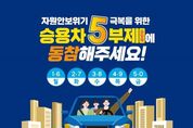 인사이드피플 장은미 기자 | ■ 자원안보위기 극복을 위한 승용차 5부제(요일제)에 동참해주세요! - 1.6 월 - 2.7 화 - 3.8 수 - 4.9 목 - 5.0 금 ■ 승용차 5부제(요일제) 실천을 위한 국민행동 · 유연근무 활성화하기 · 출퇴근 시 카풀 활성화하기 · 대중교통 이용하기 · 가까운 거리는 걷거나 자전거 타기