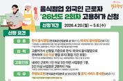 인사이드피플 장은미 기자 | 음식점업 외국인 근로자 '26년도 2회차 고용허가 신청 ■ 신청기간: 2026.4.20.(월)~5.6.(수) ■ 신청 요건 · 업종 한식 음식점업(한국표준산업분류 상 5611), 외국식 음식점업(5612) *고용보험 시스템에 등록된 업종 기준(실제 영업을 영위하는지 여부 등은 '사업자등록증' 또는 '영업신고증'으로 증빙) *기관구내식, 출장이동식, 기타간이, 주점, 비알코올 음료점은 미허용 · 업력 고용허가서 신청일 기준으로 한식·외국식 음식점업으로 연속하여 5년 이상 영업 유지(휴업 기간 포함) *부가가치세 과세표준증명원상 과세기간 또는 사업자등록증상 '개업년·월·일'로 확인 · 고용인원 내국인 근로자 1인 이상 5인 미만 사업장은 1명, 5인 이상 사업장은 2명까지 가능 *내국인근로자(피보험자) 수는 고용부에서 고용보험시스템 전산 확인 · 직무 주방보조원(한국표준직업분류 상 95220) 및 음식 서비스 종사원(45311) *현장 여건에 맞게 직무범위 탄력적 운영 가능 · 문의 - 고용노동부 상담센터 ☎1350 · 신청 - 사업장