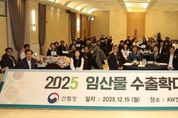 인사이드피플 심정보 기자 | 산림청은 대전 KW컨벤션센터에서 수출 지원기관, 수출업체 관계자 등 70여 명이 모인 가운데 ‘2025년 임산물 수출확대 워크숍’을 개최했다고 15일 밝혔다. 이번 행사에서는 올해 임산물 수출 확대를 위해 노력한 관계자에 대한 포상과 수출 실적과 증가율이 우수한 기업들에게 수출탑이 수여됐다. 수출 유공자로는 전태익 대흥 대표가 농식품부 장관 표창을, 최경태 율림에프앤비 대표와 박주희 경산시 주무관이 산림청장 표창을 각각 수상했으며 수출탑은 동신목재와 다윈홀딩스가 명예탑, 청림우드와 푸드웰이 발전탑을 받았다. 또한 2026년 임산물 수출 촉진 사업의 정책 방향과 달라지는 세부 사항을 공유하고, 임산물 해외 인지도 확대를 위한 홍보 지원 강화, 해외 안테나숍을 통한 해외진출 거점 마련, 생산 수출업체 연계 지원 필요 등 품목별 수출 확대 전략을 논의했다. 박은식 산림청 차장은 “올해 세계 수출환경에 많은 어려움이 있었으나 초피, 산양삼, 표고 등 주요 임산물의 수출이 증가했다.”며, “내년에도 해외 글로벌 경기둔화에 적극 대응해 수출길을 열고, 품목별 홍보 확대로 임산물 인식을 높여