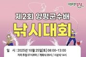 인사이드피플 강애자 기자 | 양평군은 오는 25일 관내 월산낚시터에서 ‘제2회 양평군수배 낚시 대회’를 개최한다고 밝혔다. 이번 대회는 낚시를 통해 군민과 낚시 동호인이 함께 어울리는 축제의 장을 마련하고, 건전한 낚시문화 조성과 지역 경제 활성화를 도모하기 위해 마련됐다. 낚시 어종은 향어와 잉어이며, 참가 신청은 10월 13일부터 선착순 130명까지 가능하다. 참가자들은 당일 현장에서 지정된 구역에서 낚시 실력을 겨루게 되며, 대회에는 대어상(1등 150만 원), 특별상, 행운상 등 다양한 부문에 걸쳐 푸짐한 경품이 준비되어 있다. 전진선 양평군수는 “양평의 맑은 물과 아름다운 자연 속에서 낚시를 즐기며 군민과 낚시 동호인 모두가 편안히 쉴 수 있는 자리가 되길 바란다”며, “이번 대회를 통해 낚시를 매개로 한 관광 활성화와 지역 경제에 활력을 불어넣을 것으로 기대한다”고 말했다. 한편, 양평군은 낚시 대회뿐만 아니라 수산자원 조성 사업, 낚시터 환경 정비 등 건전한 낚시 문화 확립과 수상 생태계 보전 활동을 지속적으로 추진하고 있으며, 앞으로도 친환경적인 낚시 기반 조성을 통해 양평의 깨끗한