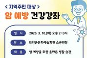 인사이드피플 장은미 기자 | 함양군보건소는 2026년‘암 예방의 날(3.21.)’을 맞이하여 오는 3월 10일 지역주민을 대상으로 암 예방과 조기검진의 중요성을 알리기 위한 건강강좌를 개최한다. 이번 건강강좌는 지역주민의 건강증진과 암 예방 인식 향상을 위해 마련됐으며, 암의 주요 발생 원인과 예방을 위한 올바른 생활습관의 중요성 등을 중심으로 진행될 예정이다. 특히 강의는 경상국립의대 강윤식 교수가 강사로 나서 일상생활 속에서 실천할 수 있는 암 예방 수칙과 함께 정기적인 검진을 통해 암을 조기 발견과 치료의 중요성, 국가암검진 참여의 필요성도 함께 안내해 주민들의 이해도를 높일 계획이다. 함양군보건소 관계자는 “암은 생활습관 개선과 정기적인 검진을 통해 충분히 예방하고 조기에 발견할 수 있는 질환”이라며 “이번 건강강좌가 지역주민들이 암 예방의 중요성을 인식하고 건강한 생활습관을 실천하는 계기가 되길 바란다”고 말했다. 한편 이번 건강강좌는 지역주민 누구나 참여할 수 있으며, 자세한 사항은 함양군보건소 건강증진담당으로 문의하면 된다.