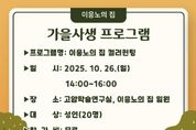 인사이드피플 강애자 기자 | 홍성군 고암이응노생가기념관은 오는 26일 오후 2시부터 4시까지, ‘가을사생 프로그램’을 운영한다고 밝혔다. 이번 프로그램은 가을 정취가 무르익은 이응노의 집 주변 풍경을 배경으로, 참가자들이 직접 자신만의 시선으로 자연의 색감을 담아내는 야외 사생 체험으로 구성됐다. 고암 이응노 화백의 예술 정신을 되새기며, 자연 속에서 창의성과 감성을 발휘할 수 있는 시간이 될 것으로 기대된다. 이번 행사는 고암학술연구실 교육실과 이응노의 집 일원에서 진행되며, 행사 당일 참가자들은 고암이응노생가기념관의 교육실에서 간단한 사전 오리엔테이션을 진행한 뒤, 이응노의 집 주변 일대에서 자유롭게 작품을 완성하는 시간을 갖게 된다. 참여 신청은 홍성군 통합예약시스템을 통해 가능하며, 프로그램에 대한 자세한 문의는 고암이응노생가기념관으로 하면 된다. 윤상구 문화유산과장은 “가을사생 프로그램은 자연의 변화 속에서 예술적 영감을 얻고, 고암 선생의 예술세계를 몸소 체험할 수 있는 의미 있는 시간”이라며, “가족 단위 참가자나 미술에 관심 있는 누구나 함께 참여해 예술의 계절을 즐기시길 바란다”고 전했다. &n