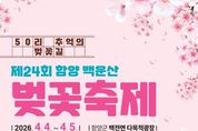 인사이드피플 강애자 기자 | 함양군은 ‘제24회 함양 백운산 벚꽃축제’가 오는 4월 4일부터 5일까지 이틀간 백전면 다목적광장 일원에서 개최된다고 밝혔다. 백전면 문화체육회(회장 황원하)가 주최·주관하는 이번 축제는 아름다운 50리 벚꽃길을 배경으로 각종 체험행사, 먹거리와 함께 벚꽃 전국트롯가요제 등 다양한 프로그램을 마련해 상춘객을 맞이할 예정이다. 백전면 50리 벚꽃길은 수동면에서 백전면으로 이어지는 구간으로, 30여 년 전 함양 출신의 고(故) 박병헌 재일거류민단장이 기증한 벚나무가 지금까지 보전 관리되어 함양군 봄 명소로 자리 잡고 있다. 축제 첫날인 4일에는 벚꽃축제 성공기원제를 시작으로 오전 11시 개막식과 축하공연, 주민자치프로그램 공연, 면민 노래자랑 등 각종 프로그램이 진행된다. 축제 둘째 날인 5일에는 마을 대항 민속놀이, 제3회 백운산 벚꽃 전국트롯가요제, 지역 가수 공연 등이 진행될 예정이며, 축제 기간 벚꽃길 야간조명 등 다양한 볼거리를 통해 방문객 체류 시간을 늘릴 계획이다. 특히, 올해로 3회째를 맞는 ‘함양 백운산 벚꽃 전국트롯가요제’가 축제 기간 개최되며