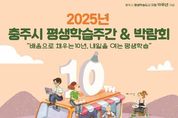 인사이드피플 강애자 기자 | 충주시는 평생학습도시 지정 10주년을 맞아 오는 18일부터 24일까지 '2025년 충주시 평생학습주간'을 개최한다고 14일 밝혔다. 올해 행사는 ‘배움으로 채우는 10년, 내일을 여는 평생학습’을 주제로, 시민 누구나 배우고 참여하며 함께 성장하는 시민 참여형 축제로 마련됐다. 행사는 충주시평생학습관과 탄금공원 메인무대를 중심으로 펼쳐지며, ‘배움·성장·미래’ 세 가지 키워드로 한 다채로운 프로그램을 진행한다. 먼저, ‘배움’을 주제로 한 '제8회 충주시평생학습박람회'에서는 10주년 특별공연과 개막식, 유공자 시상식을 비롯해 동아리 발표회, 작품 전시, 체험 부스, 프리마켓, 푸드존 등 시민이 즐길 수 있는 다채로운 현장 행사가 열린다. 다음으로, ‘성장’을 주제로 한 '제9회 충주시 문해 한마당'에서는 몸풀기 웃음체조, 삼행시 한마당, 문해 골든벨(OX퀴즈), 성인문해교육 시화전 등 문해학습자들의 성과를 공유하며 성인문해교육의 가치를 되새긴다. 마지막으로, ‘미래’를 주제로 한 평생학습도시 지정 10주년 기념행사에서는 평생학습 정책포럼, 인문학·미래과학·명