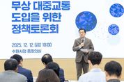 인사이드피플 노재현 기자 | 수원특례시는 12일 시청 중회의실에서 ‘수원시 무상대중교통 도입 정책토론회’를 열고, ‘수원형 무상대중교통’ 도입 정책 방향을 공유했다. 이날 정책토론회는 주제 발표와 종합토론으로 진행됐다. 김채만 경기연구원 선임연구위원이 ‘미래 대중교통 정책방향-쿠리치바 대중교통 사례’, 김숙희 수원시정연구원 선임연구위원이 ‘수원시 무상대중교통 도입 방향’을 주제로 발표했다. 수원시는 사회초년생 청년과 어르신의 교통비 부담을 덜어주기 위해 내년 1월 1일부터 무상대중교통 지원사업을 시작한다. 지원 대상은 19~23세 청년, 70세 이상 어르신이다(신청일 기준). 19~23세 청년이 K-패스 교통카드로 대중교통을 이용하면 한 달에 최대 2만 3100원(연 27만 7200원)을 환급한다. 어르신은 농협에서 우대 교통카드(G-PASS)를 발급받아 사용하면 실제 사용 금액에 대해 분기별 최대 6만 9300원(연 27만 7200원 한도)를 지원한다. 종합토론에는 아주대학교 오영태 교수, 한국교통연구원 박준식 본부장, 경기대학교 김정화 교수, 경기도 광역교통정책과 윤태완 과장이 참여