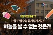 인사이드피플 장은미 기자 | 하늘을 날 수 없는 것들은? ■ 전면 통제대상 · 모든 항공기 이륙 금지 (비행 중 항공기 → 3km 이상 상공에서 대기) · 헬기 · 경량항공기 그리고 초경량 비행장치(드론 포함) 모두 STOP! * 예외: 비상·긴급 항공기 영어 듣기평가에 방해가 되는 '항공기소음 최소화' ■ 언제 통제되나요? 11월 13일(목) 13:05~13:40(총 35분) ※ 듣기평가 전·후 5분 포함 수험생에게 조용한 하늘을! 국민 여러분의 협조를 부탁드립니다.