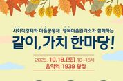 인사이드피플 강애자 기자 | 가평군은 오는 18일 오전 10시부터 오후 3시까지 음악역 1939 광장에서 주민과 함께하는 축제 ‘2025년 같이, 가치 한마당’을 연다. 이번 행사는 사회적경제기업의 판로 확대와 마을공동체, 경기행복마을관리소의 활동 성과를 알리고 주민 참여를 확대하기 위해 마련됐다. 행사에는 사회적경제기업 5곳, 마을공동체 16곳, 경기행복마을관리소 4곳 등 총 25개 단체가 참여한다. 이날 주민들은 현장에서 직접 사회적경제기업의 제품을 구매할 수 있으며, 공동체별 특색 있는 프로그램을 즐길 수 있다. 주요 프로그램은 △사회적경제기업 생산품 홍보·판매 △공동체와 경기행복마을관리소 활동 전시 및 무료 체험 △합창·뮤지컬 갈라쇼·힐링체조 등 공연 △경품 이벤트 등이 마련돼 있다. 특히 가평마을교육공동체가 제작한 단편영화 상영 등 주민 주도 콘텐츠도 선보일 예정이다. 가평군 관계자는 “‘같이, 가치 한마당’ 축제를 통해 지역사회에서 사회적경제와 공동체 활동이 더욱 확산되기를 기대한다”며 “이번 행사가 지역경제의 활력으로 이어질 수 있도록 주민 여러분의 많은 방문과 성원을 부탁드린다”고 말
