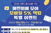 인사이드피플 심정보 기자 | 제천시가 오는 10월 29일부터 11월 9일까지 12일간 진행되는 ‘코리아 그랜드 페스티벌’에 맞춰 제천화폐 모아 모바일 결제 시 5%를 적립해주는 특별 이벤트를 실시한다고 밝혔다. ‘코리아 그랜드 페스티벌’은 ‘희망이 되는 소비, 함께 성장하는 경제’를 슬로건으로 전국에서 추진되는 소비 진작 캠페인으로, 대규모 할인 행사와 연계해 지역경제에 활력을 불어넣는 행사다. 별도의 신청 없이 행사 기간에 제천화폐 모아 QR 또는 카드 결제 시 결제금액의 5%를 적립 받을 수 있다. 상품권 월 충전 한도액은 100만 원, 보유 한도는 150만 원으로 유지된다. 이번 모바일 5% 적립 행사는 총 예산 4억원 규모로 ‘코리아 그랜드 페스티벌’ 기간 중에만 적용되며, 예산이 소진될 경우 조기 종료될 수 있다. 시 관계자는 "코리아 그랜드 페스티벌과 연계한 이번 특별 할인이 지역 상권 매출 회복과 소비심리 진작에 도움이 되길 바란다"며 "시민 여러분의 많은 관심과 참여를 바란다"고 말했다. 한편, 지류 상품권은 이번 행사와는 관계없이 기존대로 운영되며, 11월