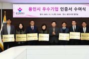 인사이드피플 이현진 기자 | 용인특례시는 11일 시청 접견실에서 ‘2025년 용인시 우수기업 인증제’ 심의 결과 선정된 ‘올해의 우수기업’ 10개 사에 인증서를 전달했다. 이상일 용인특례시장은 이들 기업 대표와 임직원들을 만나 축하와 격려 인사를 나누고 우수기업 인증서와 현판을 전달했다. 이상일 시장은 “우리 경제가 어려운 가운데서도 기업 활동을 잘 해주셔서 우수기업으로 선정된 것을 축하드린다”며 “각자 분야에서 그동안 많은 노하우를 쌓아왔기에 경제가 어려운 가운데서도 성과를 냈고, 우리 지역 경제에도 큰 보탬이 돼 주셔서 감사드린다”고 말했다. 이 시장은 “기업 활동으로 한 가족의 가장은 힘을 얻어 가정을 잘 꾸려갈 수 있고, 신규 일자리를 찾는 사람에게는 희망을 주셨다”며 “기업인들이 활동하실 수 있도록 환경을 잘 개선해 나갈 것”이라고 했다. 시는 매년 경영 실적, 기술·품질 경쟁력, 지역사회 기여도 등 다양한 지표를 종합 평가해 지역경제 발전에 기여한 중소기업을 우수기업으로 인증하고 있다. 올해 선정된 기업은 ▲㈜대성티엠씨 ▲신명이엔씨㈜ ▲주식회사 에이드로 ▲㈜에이치에스씨엠티 ▲