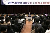 인사이드피플 노재현 기자 | 고양특례시는 지난 26일 덕양구청 대회의실에서 ‘2026년 덕양구 업무보고 및 직원 소통간담회’를 개최했다. 업무보고에는 이동환 고양시장과 주시운 덕양구청장을 비롯해 구청 13개 과·21개 동행정복지센터의 부서장, 8·9급 저연차 공무원 등 100여 명의 직원이 참석했다. 2026년 업무보고는 주시운 덕양구청장과 부서장의 보고를 통해 민선8기 덕양구 핵심 성과와 2026년 업무 추진 방향을 간략히 공유하고, 직원들과의 자유로운 토론 시간을 확대해 현장의 목소리를 청취하는 데 중점을 뒀다. 이날 부서별 업무보고와 관련해 이동환 시장은 ▲덕양구를 대표하는 창릉천 유채꽃·코스모스 축제의 성공적 개최를 위한 주관 부서와 행신2동 행정복지센터의 적극적인 협조 ▲지적재조사 사업 등 시민 불편 해소를 위한 주요 사업의 속도감 있는 추진을 당부했다. 특히 20~30대 직원들과 격의 없이 소통하는 자유토론 시간이 눈길을 끌었다. CES 2026에서 고양시에 도입하고 싶다고 생각한 기술 분야, 전 세계적인 주목을 받은 ‘고양콘’에 대한 궁금증 등 다양한 주제로 활발한 의견 교환이 이어졌다