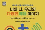 인사이드피플 강애자 기자 | 시흥시는 시민이 함께 만들고, 시민이 주인공인 ‘제17회 시흥시평생학습축제’를 오는 10월 24일부터 26일까지 3일간 시흥ABC행복학습타운에서 개최한다. 지난 2006년에 처음 시작된 시흥시평생학습축제는 배움을 통해 성장한 시민들이 학습의 즐거움과 성과를 함께 나누고 축하하는 한마당으로, 올해 17번째를 맞이한다. 이번 축제는 ‘너와 나, 우리의 다양한 배움 이야기’라는 주제로 초청 강연, 체험, 전시, 공연, 포럼 등 시민 누구나 참여할 수 있는 다채로운 프로그램이 마련됐다. 10월 24일 오전 10시에는 TV예능 프로그램인 ‘유 퀴즈 온 더 블럭’에 출연해 학교다운 학교의 새로운 모델을 제시한 이명학 교수(前 중동고 교장)의 초청 강연이 시흥ABC행복학습타운 ABC홀에서 열린다. 이어 오후 2시에는 ‘느린 걸음, 다양한 길’을 주제로 생애 전반의 슬로우 러너를 이해하는 학술포럼이 지혜관 2층에서 진행된다. 10월 25일과 26일에는 28개의 체험 프로그램과 20개 팀의 공연, 전시와 먹거리 부스가 운영되며, 26일 오전 10시 30분에는 의사에서 웹툰 작가, 유튜버