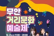 인사이드피플 강애자 기자 | 전남 무안군은 오는 24일 남악 중앙공원 일원에서 무안거리문화예술제를 개최한다. 무안거리문화예술제는 ‘문화 캔버스 – 도시, 예술로 물들다’ 라는 주제로 기존의 음악 공연 중심 거리예술에서 벗어나 다양한 분야의 지역예술가와 군민이 함께 어우러지는 참여형 문화예술제로 마련됐다. 일상 속 거리 공간을 예술로 채워 군민들에게 색다른 문화 향유 기회를 제공하는 것이 이번 행사의 가장 큰 특징이다. ▲무안군립국악원과 무안국악협회가 선보이는 ‘국악한마당’을 시작으로 ▲관내 청소년이 꾸미는 ‘꿈나무 콘서트’ ▲어린이들을 위한 ‘책 읽어주는 산타할머니’ ▲가족 단위 관람객이 함께 즐길 수 있는 ‘밖으로 나온 영화관’ 등 남녀노소 모두가 즐길 수 있는 프로그램으로 풍성하게 구성됐다. 또한 가수 경서, 정재욱과 뮤지컬 가수 루이스초이, 박소연 등이 출연하는 뮤직콘서트가 펼쳐져 연말 분위기를 한층 고조시킬 예정이다. 그 밖에도 관내 작가들과 함께하는 컵·접시 만들기, 크리스마스 리스 만들기, 캘리그라피 달력만들기, 솟대 만들기 등 다양한 체험 프로그램이 운영되며, 목포대학교 미술학과 학생들