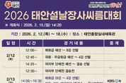 인사이드피플 강애자 기자 | 태안군이 민족 대명절 설을 맞아 2월 12일부터 18일까지 태안종합실내체육관에서 ‘위더스제약 2026 태안 설날장사 씨름대회’를 개최한다. 대한씨름협회가 주최하고 태안군씨름협회가 주관하는 이번 대회는 32개 팀 291명의 선수가 참가해 모래판 위 최강자를 가린다. 군은 민족 전통 경기인 씨름을 알리고 군민과 관광객이 함께 즐기는 축제의 장을 마련할 계획이다. 대회는 12일 예선을 시작으로 13일 여자부 개인전 및 단체전 결정전이 열린다. 14일 소백장사, 15일 개회식 및 태백장사, 16일 금강장사, 17일(설날) 한라장사 결정전이 이어지며 대회 마지막 날인 18일 백두장사 결정전이 펼쳐진다. 박진감 넘치는 경기는 KBS 1TV와 KBS N SPORTS를 통해 전국에 생중계된다. 군은 많은 주민이 씨름의 묘미를 즐길 수 있도록 가로등 현수기와 전광판 등을 활용해 대회 일정을 대대적으로 홍보한다. 방문객 편의를 위해 대회 기간인 12일부터 18일까지 7일간 셔틀버스가 운행된다. 노선은 태안공영버스터미널을 출발해 다이소 앞, 우체국사거리, 이석민 피자 등을 거쳐 종합실내체육