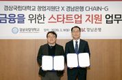 인사이드피플 심정보 기자 | 경상국립대학교 창업지원단은 2월 9일 BNK경남은행 본점에서 ㈜경남은행과 지역 유망 스타트업의 지속 가능한 성장을 도모하기 위한 ‘생산적 금융을 위한 스타트업 지원 업무협약’을 체결했다. 이번 협약은 대학의 창업지원사업과 경남은행의 스타트업 육성 프로그램인 ‘체인지(CHAIN-G)’를 연계하여, 금융·비금융이 결합된 생산적 금융 기반의 지원 체계를 구축하고 지역 혁신 창업 생태계 조성에 기여하기 위해 마련됐다. 양 기관은 협약에 따라 ▲우수 창업기업 공동 발굴 및 추천 ▲창업기업 성장 지원 프로그램 공동 협력 ▲금융 서비스 및 오피스 인프라 제공 ▲네트워킹 및 정보 교류 활성화 ▲투자 및 스케일업 연계 등 다방면에서 상호 협력하기로 했다. 경상국립대학교는 창업중심대학사업, 라이즈(RISE) 사업, 교원·학생 창업기업 등 우수한 스타트업을 경남은행의 CHAIN-G 프로그램에 추천하고, 경남은행은 참여 기업 가운데 대학 연계가 적합한 기업을 경상국립대학교 창업지원 사업에 매칭한다. 또한, 양 기관이 보육 중인 기업은 각종 행사, 컨설팅, 오픈이노베이션 등에 특별 자격으로 참