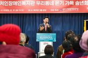 인사이드피플 노재현 기자 | 용인특례시는 12일 용인시처인장애인복지관이 한해 동안 나눔을 실천한 후원자와 자원봉사자를 위한 ‘우리동네 온기가득 송년회’를 열었다고 밝혔다. 이 행사에 참석한 이상일 용인특례시장은 장애인복지를 위해 헌신한 후원자와 자원봉사자, 복지관 관계자들을 격려하고, 감사의 마음을 나눴다. 이상일 시장은 “처인장애인복지관은 장애인 복지 수준 향상을 위해 훌륭한 활동을 해왔다”며 “이 자리에 계신 후원자와 자원봉사자 여러분의 헌신적인 노력은 장애와 비장애의 벽을 허물고, 장애인에게 희망을 전달했다”고 말했다. 이 시장은 “용인특례시는 장애인 복지 활동과 정책을 선도적으로 운영하고 있고, 장애인을 위한 시설개선에도 적극 노력하고 있다”며 “장애인복지관에 많은 후원이 모이고 있고, 이 마음이 용인특례시를 따뜻한 공동체 사회로 만들고 있다”고 했다. 이날 행사에는 이상일 시장을 비롯해 지역 주요 내빈, 후원자, 자원봉사자, 복지관 이용자 등 200여 명이 참석했다. 행사는 식전 공연을 시작으로 송년회 영상 시청, 송년사 및 축사, 유공자 표창, 응원 메시지 퍼포먼스 순으로 진
