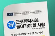 인사이드피플 장은미 기자 | 체크! 알바·취업에 성공하셨다면, 잊지말고 확인하세요! ■ 근로계약서에 꼭! 들어가야 할 사항 *근로기준법 제17조 제2항 ① 임금 구성항목·계산 및 지급 방법 ② 소정근로시간 ③ 휴일 ④ 연차 유급휴가 - 작성 후 반드시 1부를 노동자에게 교부 - 위반할 경우 사업주 대상 500만 원 이하의 벌금