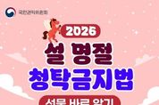 인사이드피플 장은미 기자 | ■ 2026년 설 명절 청탁금지법 선물 바로 알기 하나, 공직자에게 원활한 직무수행 또는 사교·의례 목적으로 제공되는 선물은 5만 원, 농축수산물 및 농축수산가공품 선물은 15만 원까지 가능합니다. 다만, 명절 기간*에 한정하여 농축수산물 및 농축수산가공품 선물은 30만 원까지 허용됩니다. *2026.1.24.(토)~2.22.(일) (30일간), 택배 등으로 발송 시에는 발송일자 기준 둘, 공직자의 직무와 직접적인 이해관계*가 있는 경우에는 가액 범위 내라 하더라도 원활한 직무수행, 사교·의례 목적으로 볼 수 없으므로 공직자에게 일체의 선물도 줄 수 없습니다. *인·허가신청 민원인, 입찰참여 등 유관기관, 인사·평가·감사 대상자 등과 담당 공직자 관계 셋, 농축수산물 선물에는 농산물, 축산물, 수산물뿐만 아니라 임산물도 포함됩니다. 농축수산가공품*은 농축수산물을 원료 또는 재료의 50%를 넘게 사용하여 가공한 제품만 해당합니다. *농축수산가공품 해당 여부는 소관부처인 농림축산식품부, 해양수산부에 문의 넷, 청탁금지법상 선물에 포함되는 상품권은 특정한 물품 또는 용역의 수