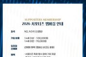 인사이드피플 조은설 기자 | 김천상무 공식 서포터즈 ‘수사불패’가 멤버십 회원을 모집한다. 김천상무 공식 서포터즈 수사불패가 1월 28일부터 시즌 종료 시까지 ‘2026 서포터즈 멤버십’ 회원을 모집한다. 멤버십은 선착순 200명 한정으로 운영되며, 가입비는 14세 이상 10만 원, 14세 미만 7만 원이다. 이번 서포터즈 멤버십은 ‘역대급 혜택’으로 구성됐다. 먼저 멤버십 회원은 김천상무 홈경기 시 선수들과 가장 가까운 곳에서 응원의 열기를 느낄 수 있는 서포터즈석(N2, N3구역) 입장권을 정액 7천 원에 구매할 수 있다. 동시에 가입회원 본인에 한해 서포터즈석 선예매가 가능하다. 다양한 이벤트 혜택도 있다. 서포터즈 특화 행사 참여 기회가 제공되며, 홈경기 서포터즈석 티켓 지원, 원정경기 티켓 일부 지원 혜택도 받을 수 있다. 멤버십 패키지 구성 또한 풍성하다. 서포터즈를 형상화한 멤버십 실물카드와 랜야드가 기본으로 제공되며, 14세 이상 가입자는 구단 공식 의류 후원사 켈미 바람막이를 받을 수 있다. 14세 미만 가입