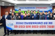인사이드피플 조은설 기자 | 장성군이 5일 군청 상황실에서 전라남도생활체육대축전 조직위원회 발대식을 가졌다. 위원회는 총 23명으로 구성됐다. 조직위원장은 장성군수, 부위원장은 부군수·체육회장·장애인체육회 상임부회장 3인이 맡았다. 위원으로는 유관기관장, 사회단체장, 언론인, 체육회 임원 등 19명이 임명됐다. 예정되어 있는 3종의 생활체전 성공 개최를 위해 역량을 모으게 된다. 올해 장성군에선 △제21회 전라남도어르신생활체육대축전(5월 14일~15일) △제38회 전라남도생활체육대축전(9월 12일~14일) △전라남도장애인생활체육대회(10월 15일~16일)가 열린다. 군은 지난해 전남체전·전남장애인체전 성공 개최의 경험을 살려 올해 생활체육대축전 준비에 내실을 기할 방침이다. 김한종 조직위원장은 “조직위원회와 더불어 전남생활체육대축전의 성공적인 개최를 이끌 것”이라며 “5만 군민과 함께 화합과 성장의 기회로 만들겠다”고 포부를 밝혔다.