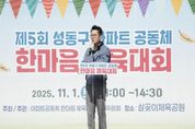 인사이드피플 강애자 기자 | 서울 성동구는 지난 11월 1일 살곶이체육공원에서 성동구 아파트 단지들이 한자리에 모여 ‘제5회 아파트공동체 한마음 체육대회’를 성황리에 개최했다. 올해로 5회째를 맞는 이번 체육대회는 성동구 아파트공동체 활성화단체 연합회(성아공 연합회)가 중심이 된 아파트공동체 한마음 체육대회 추진위원회 주관으로 진행됐으며, 성동구청과 각 아파트 공동체 활성화단체가 협력하여 원활한 행사 진행을 지원했다. 성동구가족센터, 옥수종합사회복지관 등 관내 복지시설에서는 다양한 체험부스 등을 운영했다. 체육대회는 관내 32개 아파트에서 약 650명의 입주민이 참여하여, 각기 다른 아파트 단지 주민들이 4개의 팀을 이뤄 협력과 경쟁을 즐기는 방식으로 진행됐다. 참가자들은 풍선 기둥 만들기, 한마음 공굴리기 등 가족과 이웃들이 함께 즐길 수 있는 스포츠 종목에 참여도 하고, 입주민 장기 자랑, 아이들을 위한 키즈존, 푸드트럭 등 다양한 볼거리, 먹을거리 등으로 즐거운 시간을 보냈다. 특히, 이번 체육대회는 단순히 스포츠를 즐기는 것을 넘어, 아파트 단지 내 주민들 간의 유대감을 깊게 만드는 기회가 됐다. 경기가