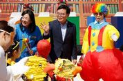 인사이드피플 강애자 기자 | 진교훈 서울 강서구청장이 25일 방화근린공원 일대에서 열린 ‘제14회 강서어린이 동화축제’를 찾아 아이들과 시간을 함께했다. 진 구청장은 이날 축제의 시작을 알리는 ‘거리 퍼레이드’에 참여했다. 퍼레이드는 서울디지털콘텐츠고에서 방화근린공원까지 약 1㎞ 구간에 펼쳐졌다. 1천2백여 명의 참가자들이 이상한 나라의 앨리스, 미운 아기 오리 등 동화 속 의상을 입고 거리를 행진했다. 이어 진 구청장은 어린이 대표 3명 등과 본무대에 올라 ‘동화 세계의 문을 여는 개막 퍼포먼스’를 선보였다. 아이들과 음악에 맞춰 자리에서 일어나 펄쩍펄쩍 뛰는 등 격의 없이 소통하며 축제를 함께 즐겼다. 이날 방화근린공원은 삼삼오오 나들이를 나온 가족 단위 관람객들의 발길이 끊이질 않았다. 잔디밭마다 돗자리가 펼쳐졌고 도시락을 먹는 아이들, 동화 속 의상을 차려입은 아이들을 사진에 담으려는 모습들이 눈에 띄었다. 초등학생 아이와 함께 찾은 방화동 주민 김요환(40대) 씨는 “아이와 함께 특별한 추억을 만들고 싶어 4년째 동화축제에 참여하고 있다”고 말했다. 김 씨의 딸 김한나 양(송화초3)은 “어